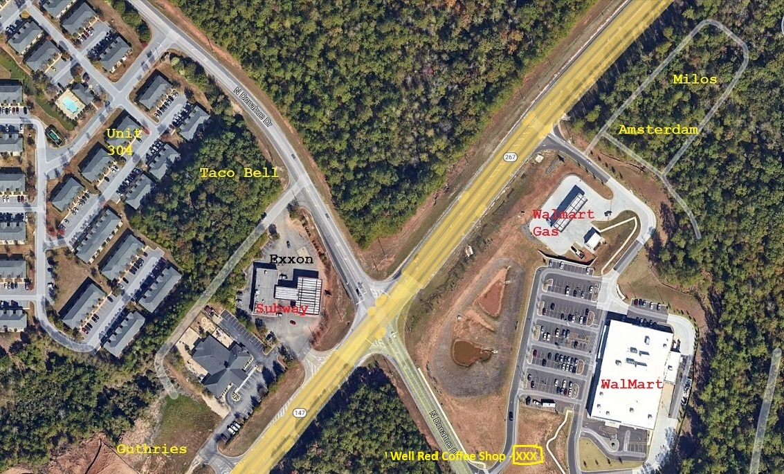 Restaurants and gas stations near unit 304.